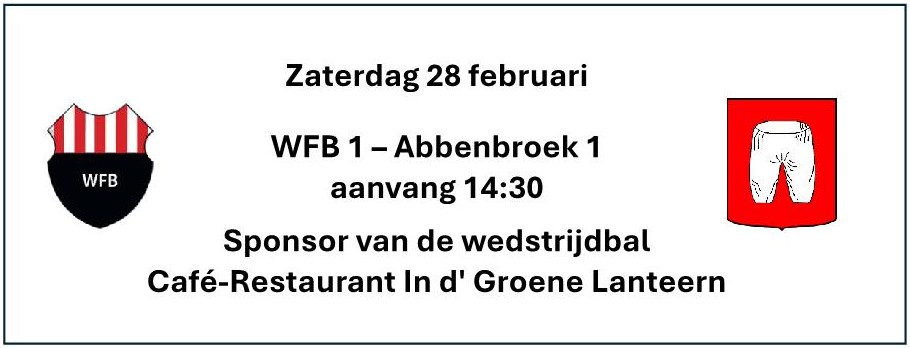 Hier is het wedstrijdverslag, de foto's en de doelpunten van de wedstrijd WFB - NBSVV van zaterdag 24 januari.WFB heeft [Lees meer]