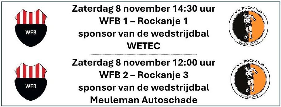 WFB 2 en WFB JO17-1 gaan zaterdag niet door.