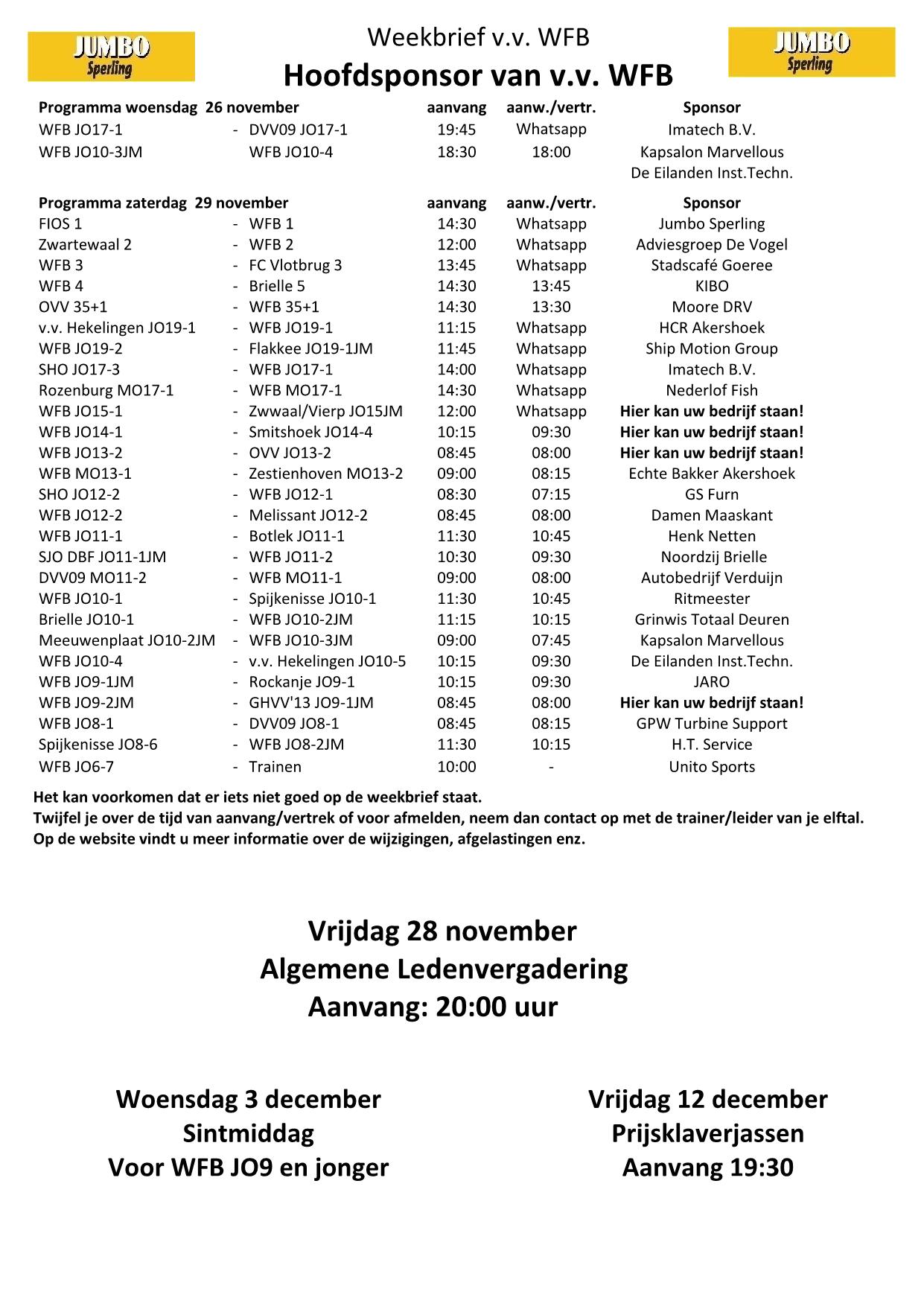 Weekbrief 13 seizoen 2025-2026, 29 november