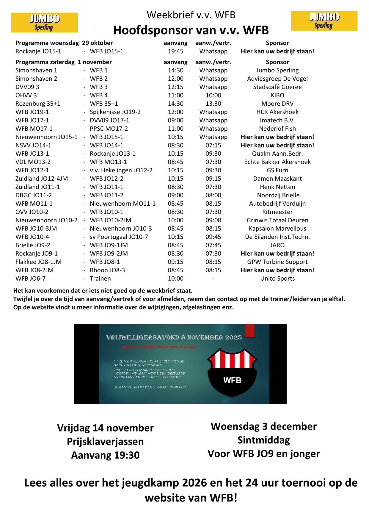 Weekbrief 9 seizoen 2025-2026, 1 november